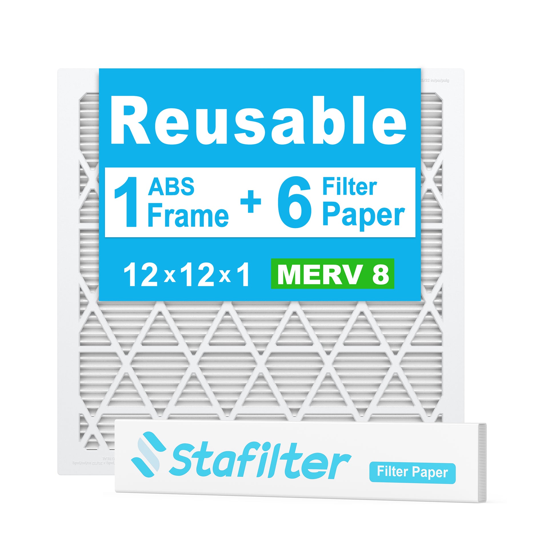 12*12*1 - Reusable Air Filter, MERV 8, 6 Pack Replaceable Filter Media + 1 Reusable ABS Plastic Frame