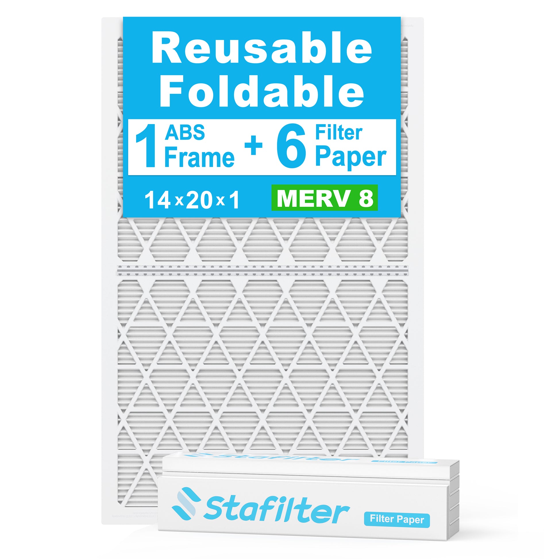 14*20*1 - Reusable Air Filter, MERV 8, 6 Pack Replaceable Filter Media + 1 Reusable ABS Plastic Frame